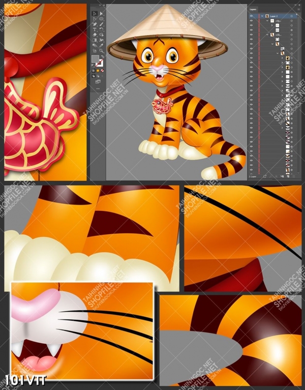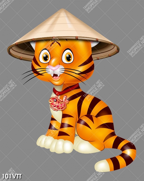 AI, EPS tranh hổ ngây thơ đón xuân nhâm dần 2022, file gốc chất lượng cao tranh hổ đội nón lá, tải file tranh hổ ngồi ngộ nghĩnh nhâm dần