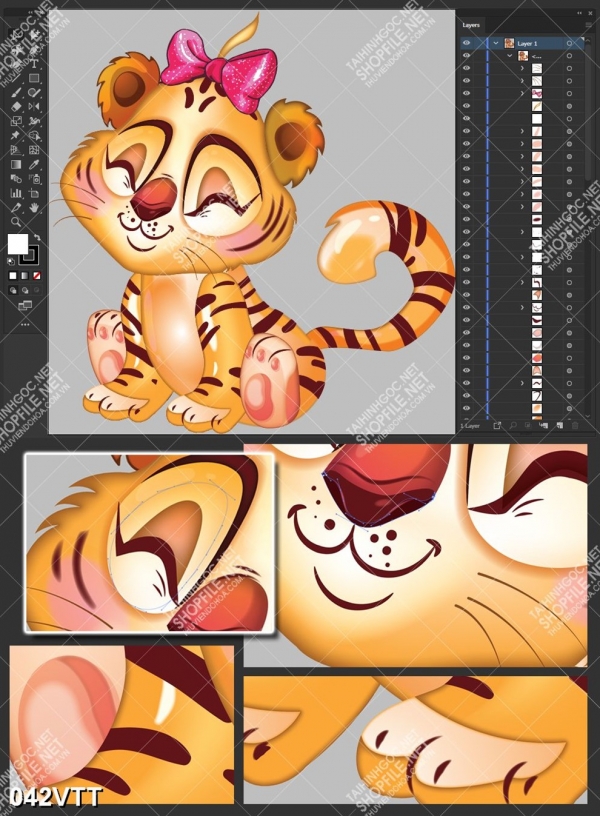 AI,EPS tranh hổ siêu cute 2022, file gốc tranh hổ dễ thương nhâm dần 2022, download tranh hổ vui vẻ đón chào năm mới 2022