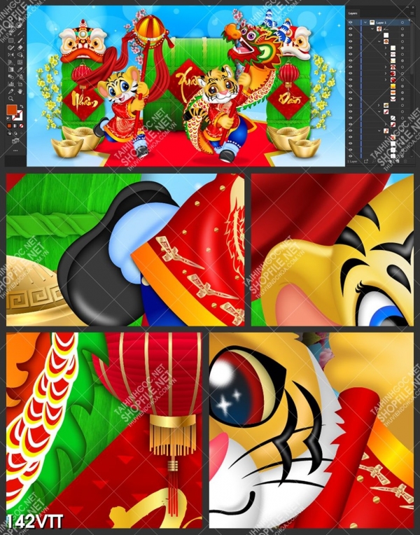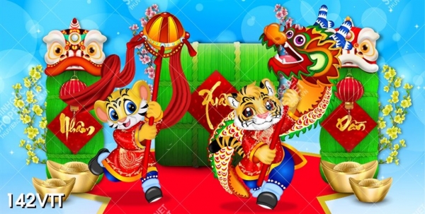 Background tranh đội hổ biểu diễn múa rồng trên sân khấu 2022, download tranh hổ độc đáo, file gốc tranh hổ mang niềm vui hạnh phúc đến mọi nhà
