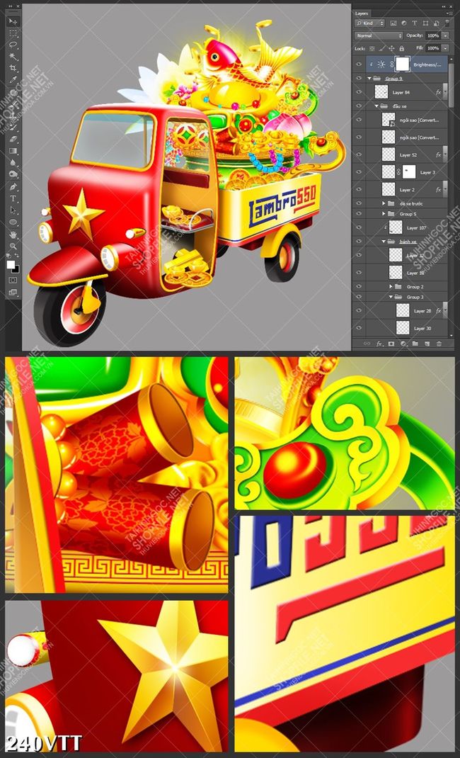 File tranh trang trí tết xe lam chở vàng