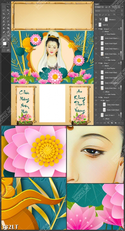 Mẫu lịch thiết kế phật bà quân âm hiền từ, file gốc chất lượng cao tranh lịch tết chào xuân sang