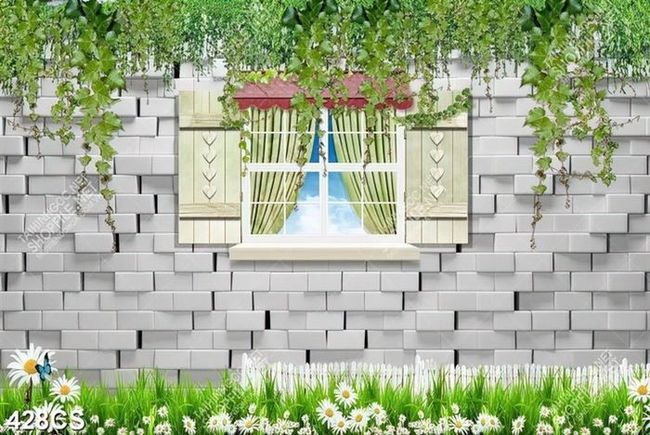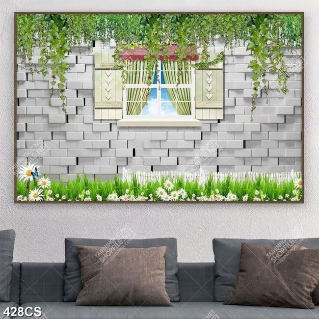 Tranh 3D dán tường cửa sổ bên dàn dây leo in uv