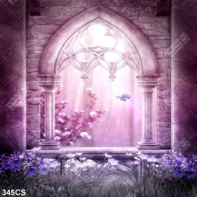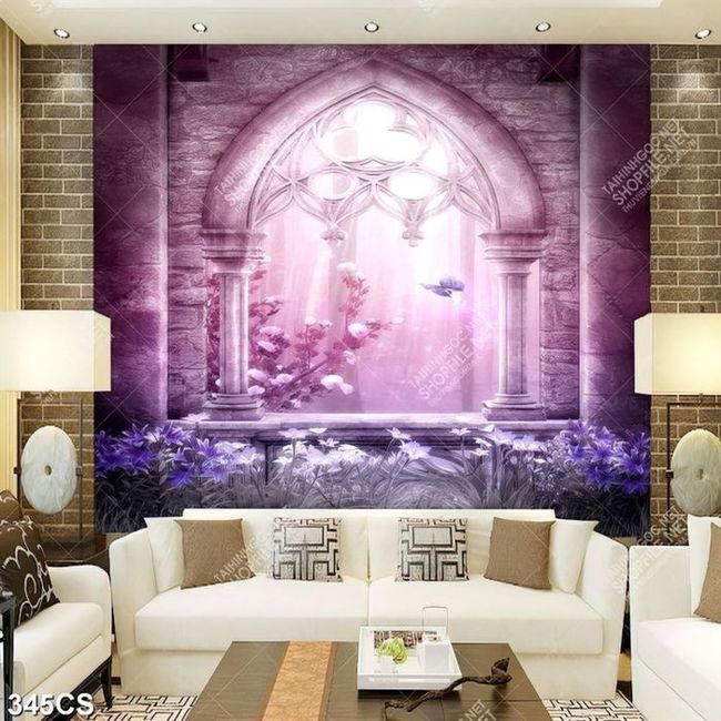 Tranh 3D khung cửa màu tím nghệ thuật in kính