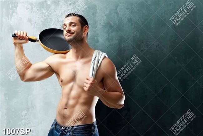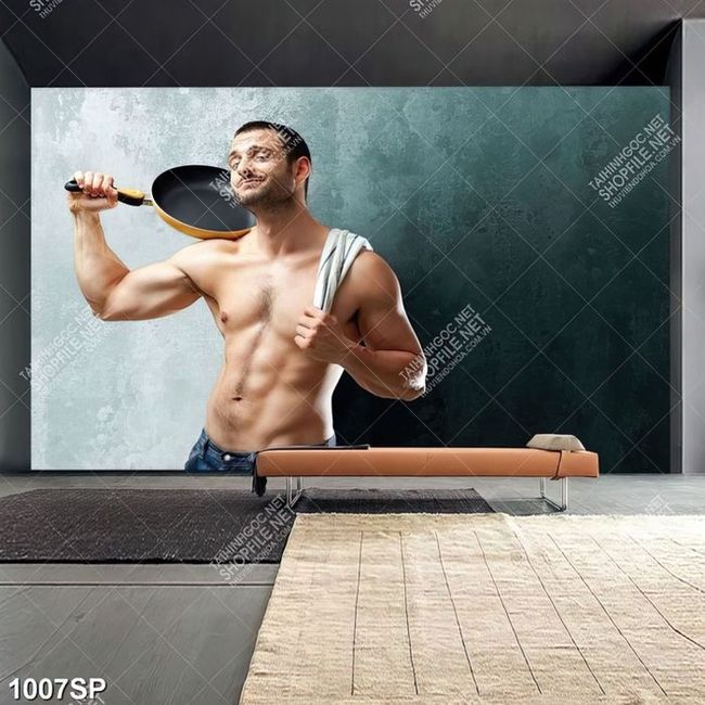 Tranh anh chàng với thân hình nam tính đứng bên tường treo spa