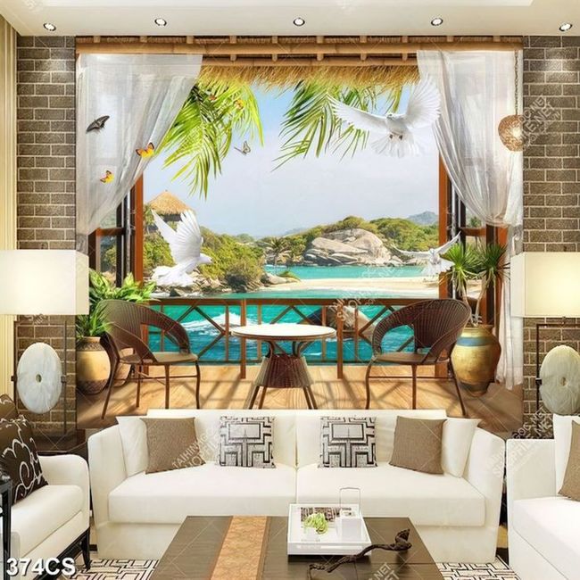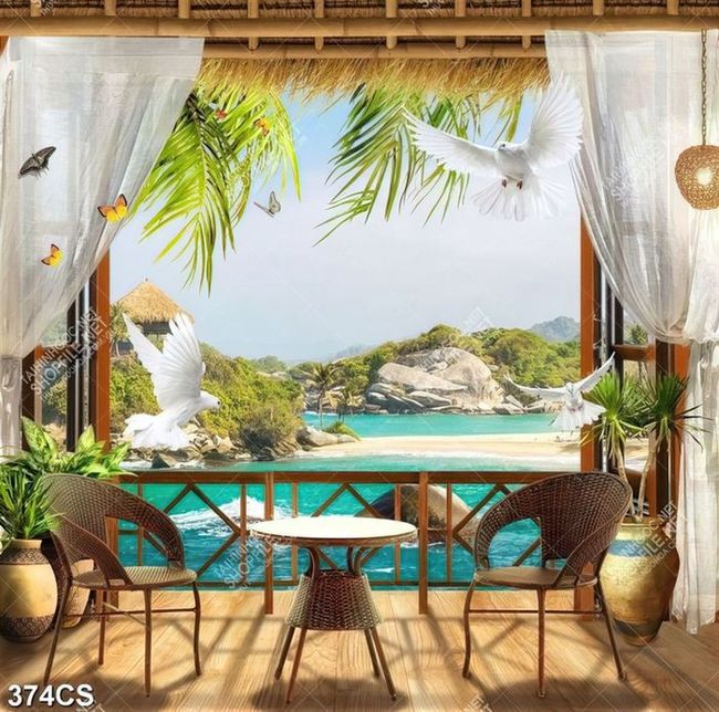Tranh ban công nhìn ra biển đảo trang trí tường đẹp nhất