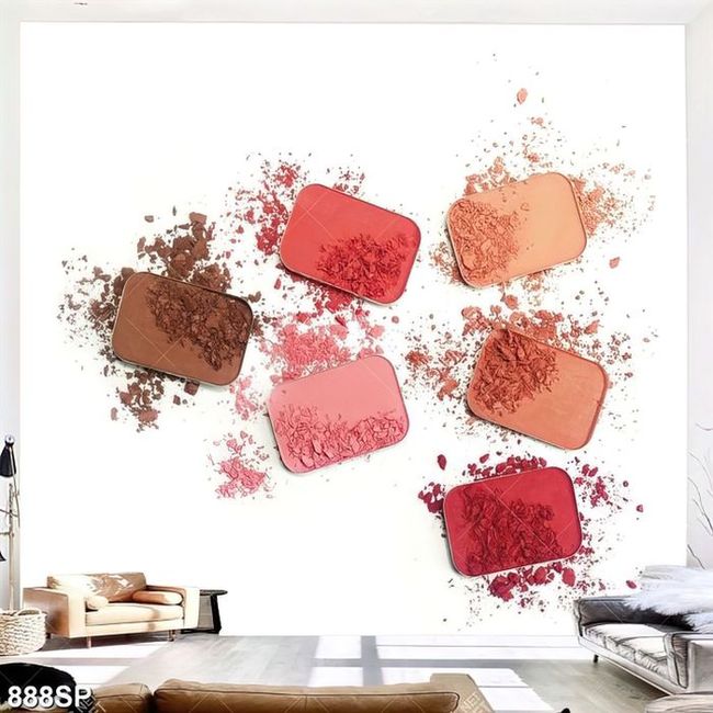Tranh các phấn màu trang điểm đổ trên bàn treo tường spa