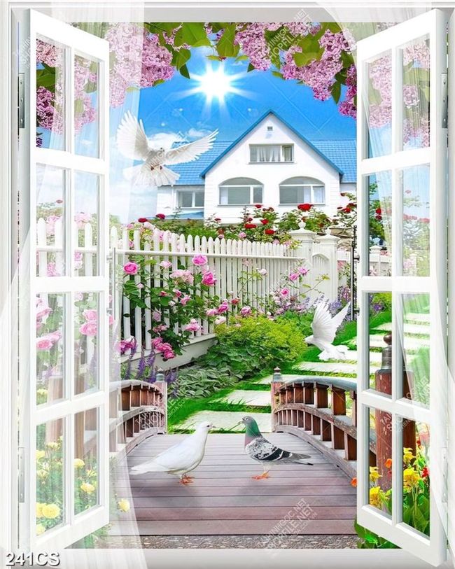Tranh cánh cổng hoa và ngôi nhà in uv