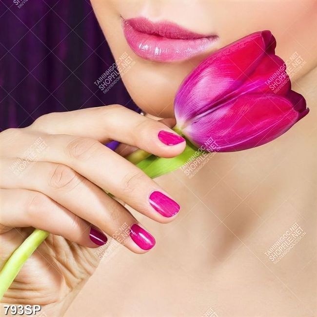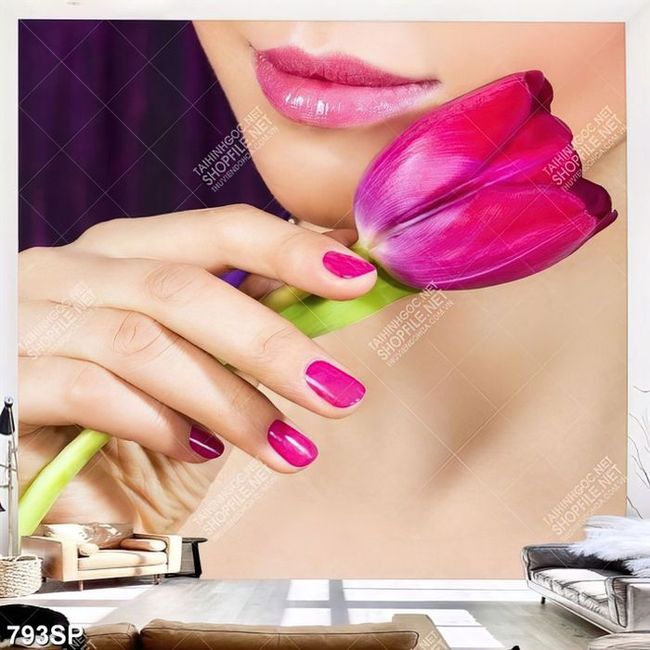 Tranh canvas treo tường spa cô gái cầm hoa Tu líp