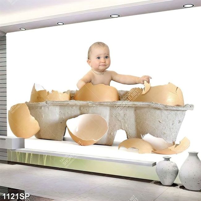 Tranh cậu bé dễ thương ngồi trong vỏ trứng