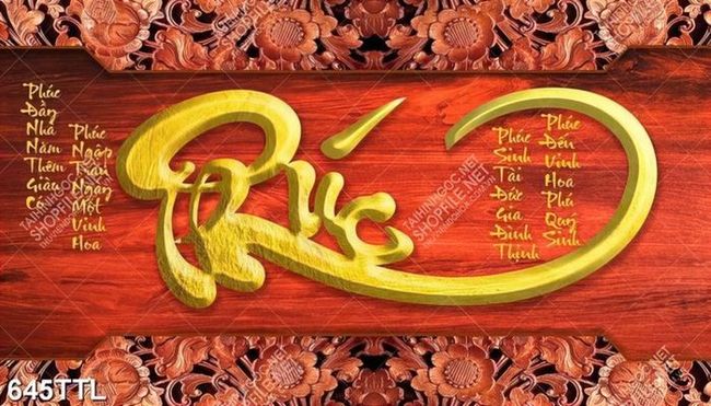 Tranh chữ Phúc dáp vàng trên nền gỗ gắn tường