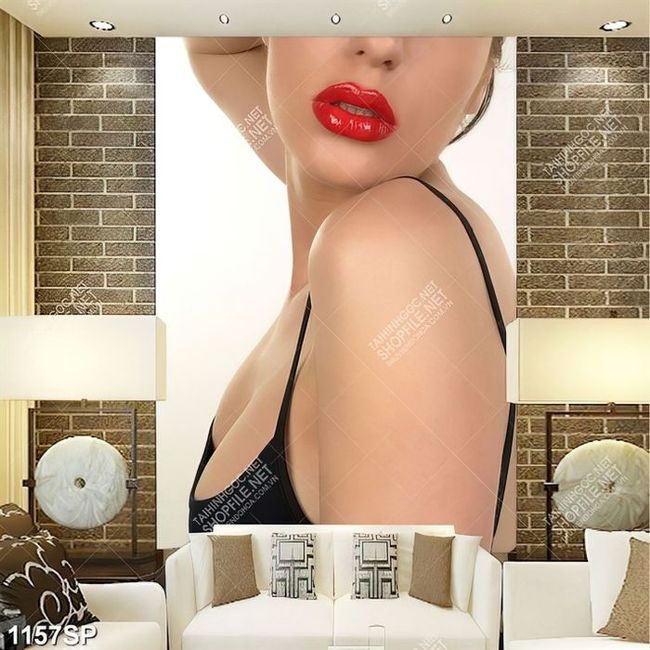 Tranh cô gái gợi cảm với đôi môi đỏ mọng trang trí spa