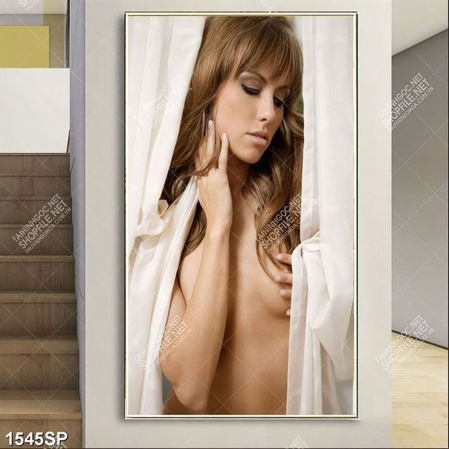 Tranh cô gái khỏa thân nghệ thuật bên tấm rèm cửa treo spa