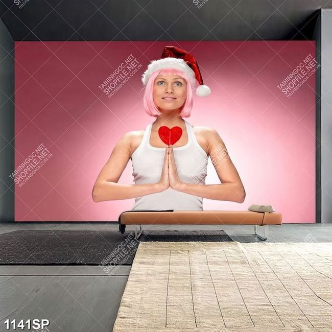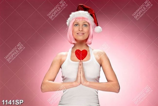 Tranh cô gái trẻ cầm trái tim đỏ trên tay