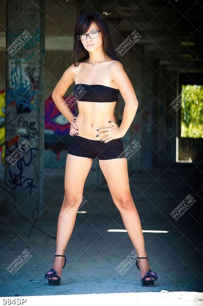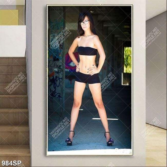 Tranh cô gái trẻ nóng bỏng đứng dưới ngôi nhà củ treo spa