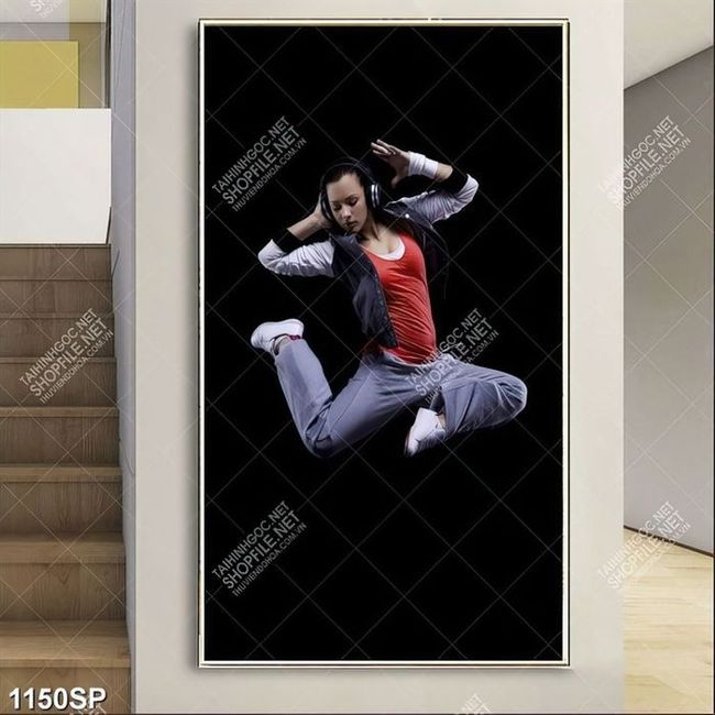 Tranh cô gái trẻ phiêu cùng âm nhạc