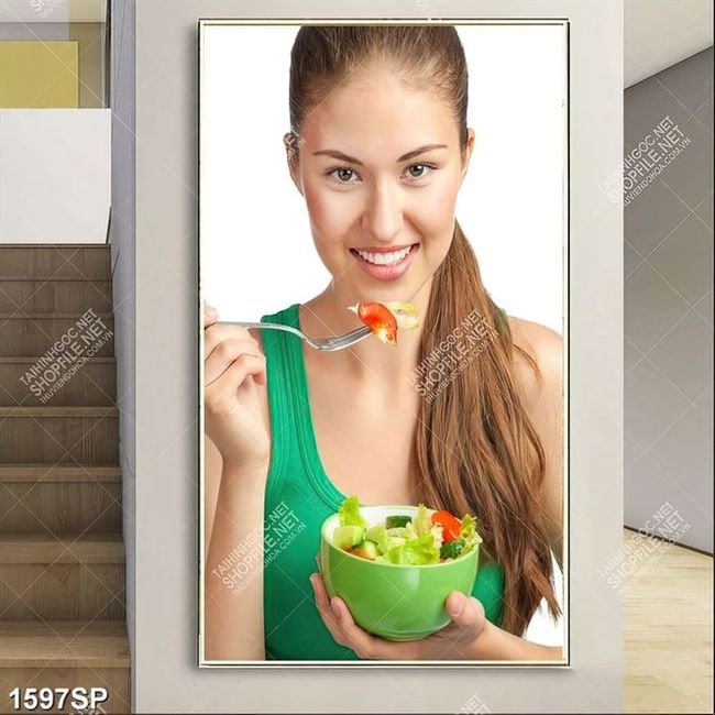 Tranh cô gái trẻ thưởng thức salat treo spa