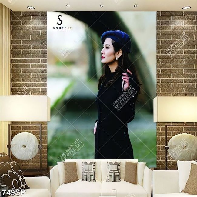 Tranh cô gái xinh đẹp đứng tạo dáng bên hồ treo tường Spa