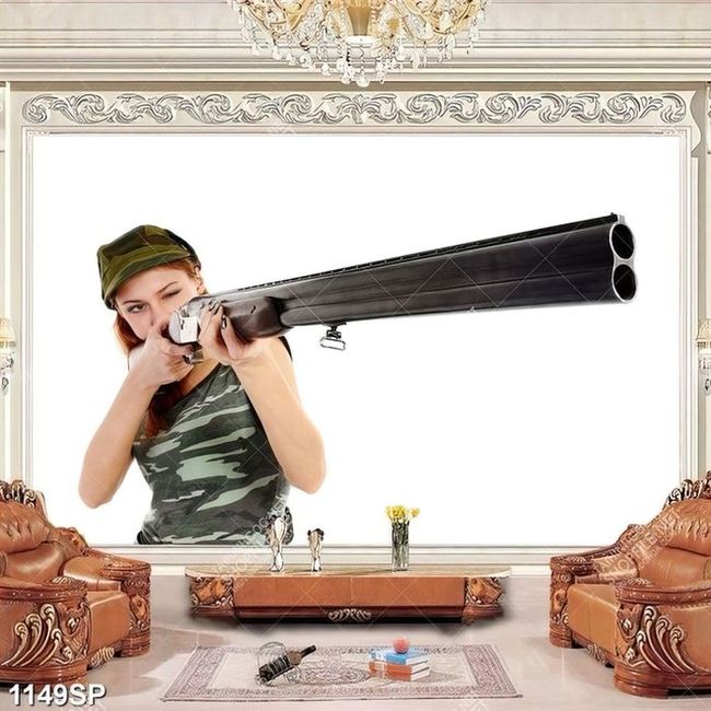 Tranh cô nàng cầm súng ống cá tính treo spa