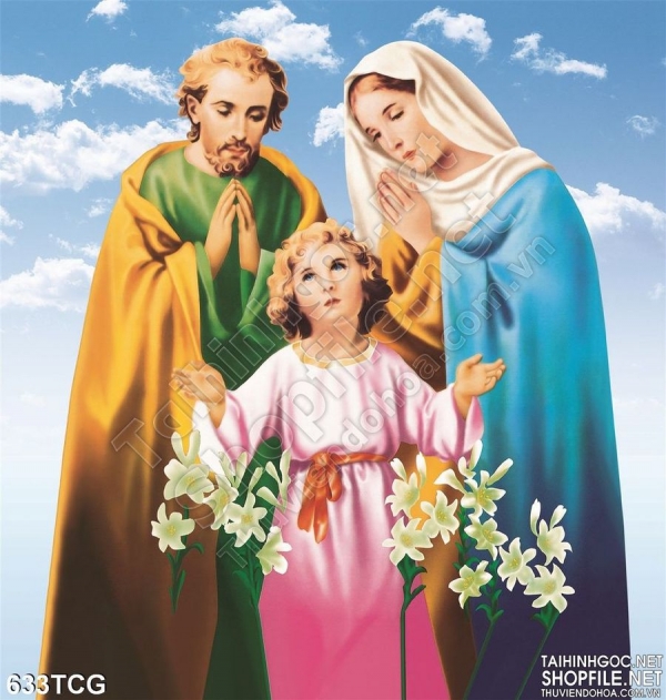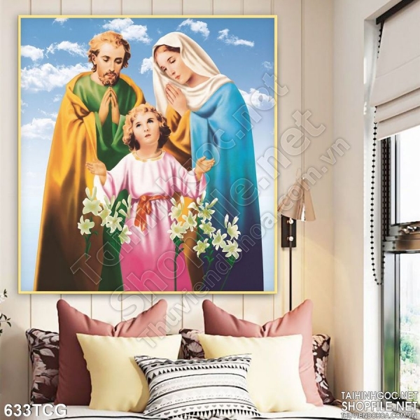 Tranh công giáo gia đình cùng cầu nguyện in uv
