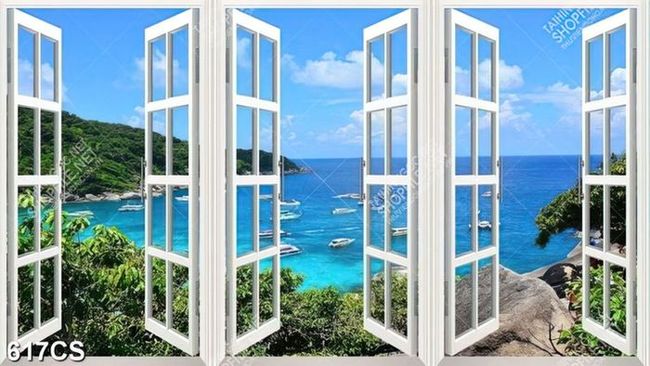 Tranh cửa sổ hướng ra những chiếc thuyền đang cập bến