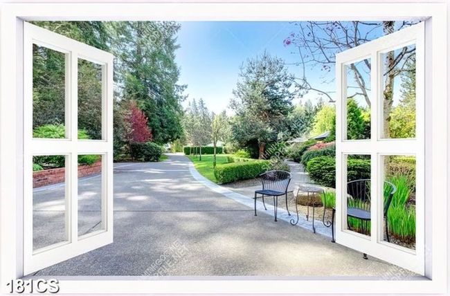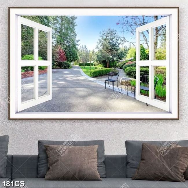 Tranh cửa sổ hướng ra sân vườn bình yên