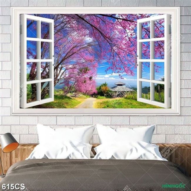 Tranh cửa sổ nhìn ra cây hoa anh đào đẹp nhất