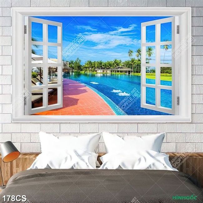 Tranh cửa sổ trong khu nghĩ dưỡng sang trọng in uv
