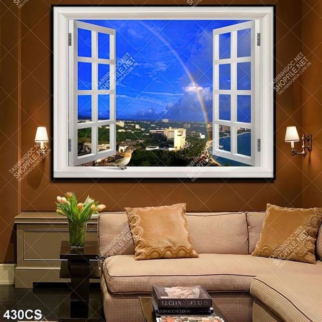 Tranh cửa sổ và bầu trời xanh đẹp nhất