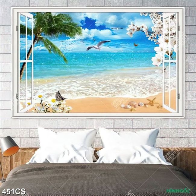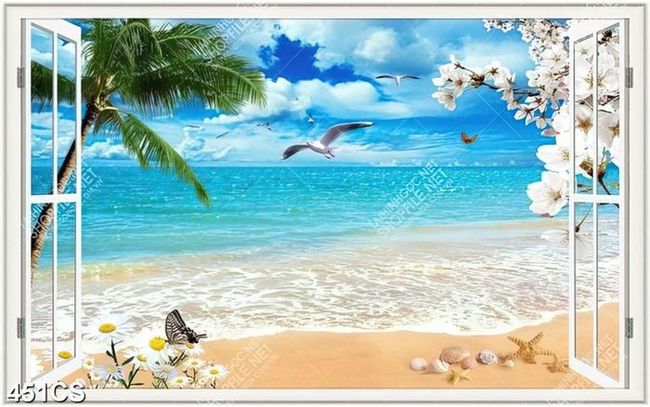 Tranh cửa sổ và hoa hướng ra bờ biển