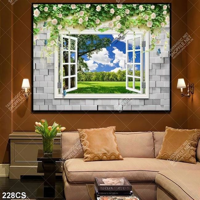 Tranh cửa sổ và hoa trang trí phòng ngủ