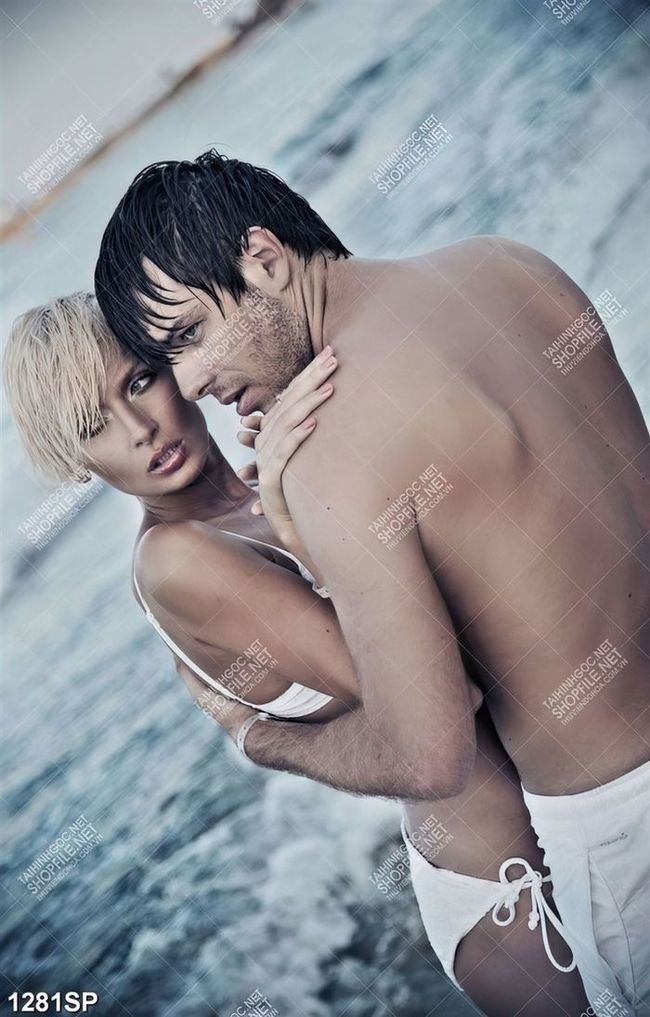 Tranh đôi nam nữ đứng bên bờ biển