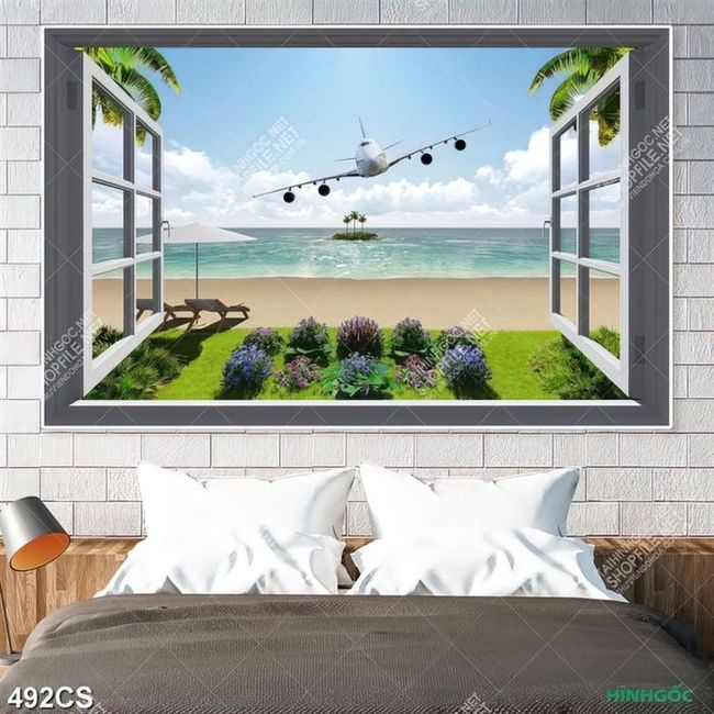 Tranh ghép cửa sổ và máy bay trên biển chất lượng cao