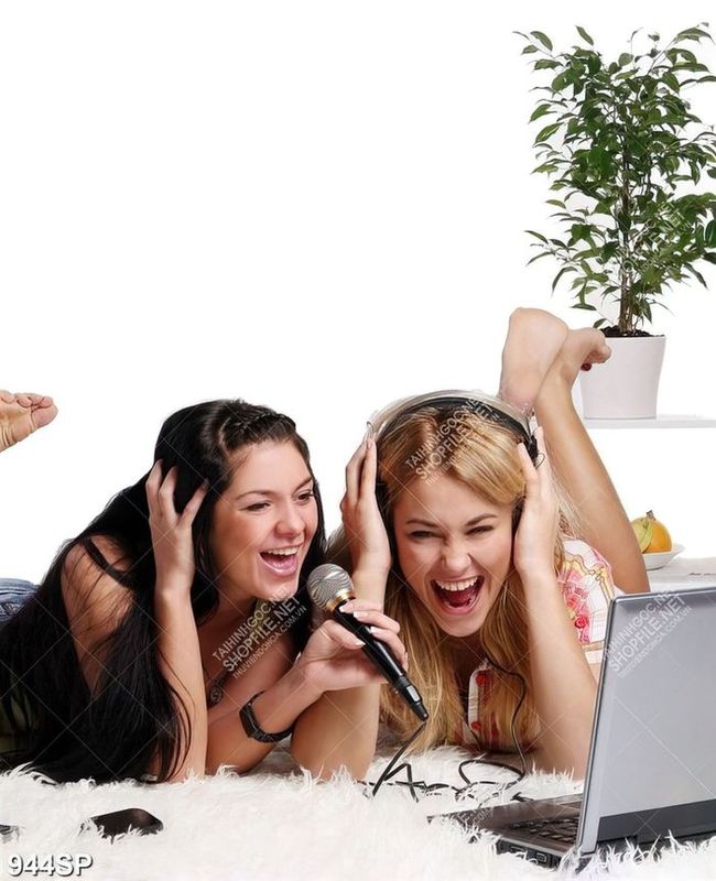 Tranh hai cô gái vui vẻ nghe nhạc treo tường spa