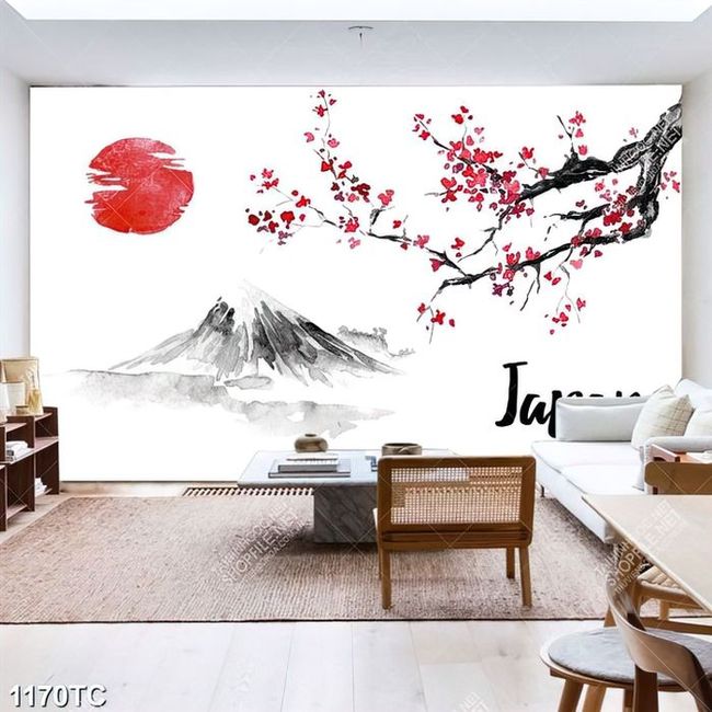 Tranh hoa đào và núi Phú Sĩ