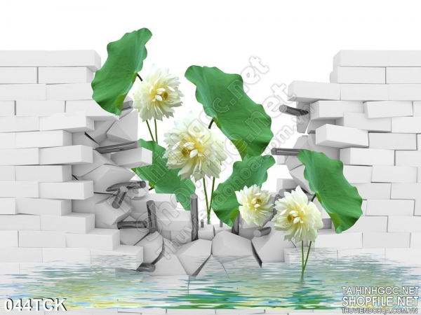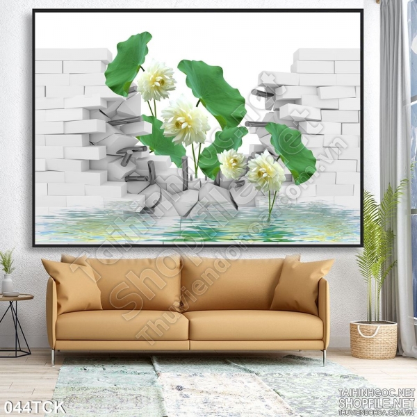 Tranh hoa sen, cá chép dán tường