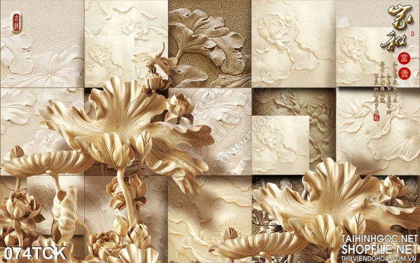 Tranh hoa sen, cá chép điêu khắc gỗ