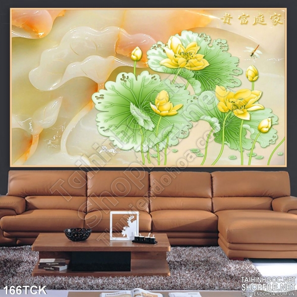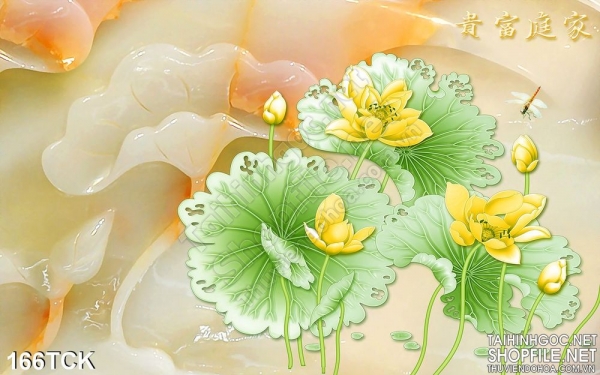 Tranh hoa sen, cá chép giả ngọc cẩm thạch