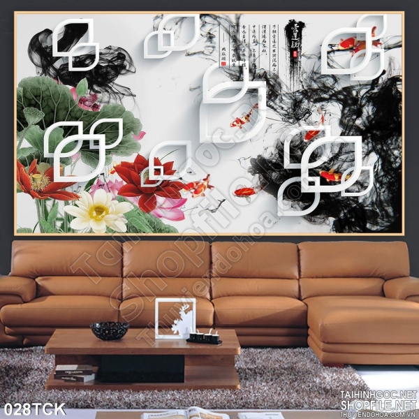 Tranh hoa sen, cá chép trang trí tường