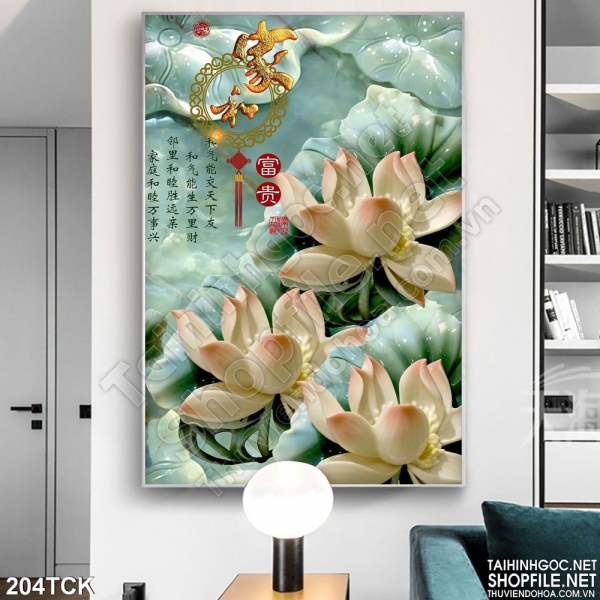 Tranh hoa sen giả ngọc phong thủy