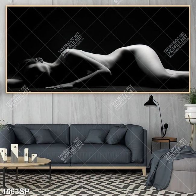 Tranh khỏa thân nghệ thuật trắng đen treo spa