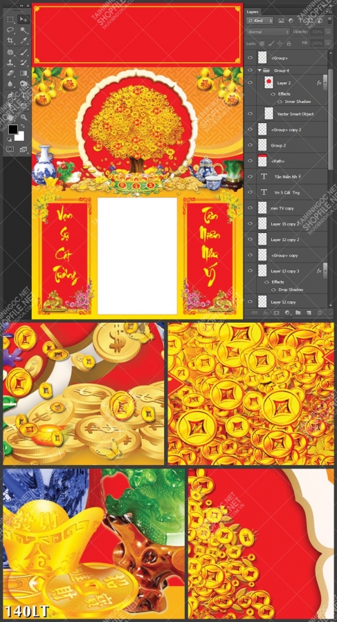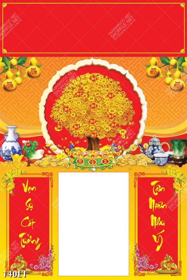 Tranh lịch cây vàng phát tài lộc, file gốc tranh lịch trang trí ngày tết