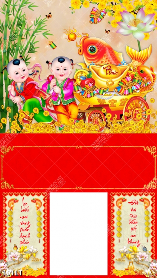Tranh lịch em bé kéo xe vàng thiết kế chào năm mới, mẫu file gốc chất lượng tranh lịch thiết kế treo tường độc đáo
