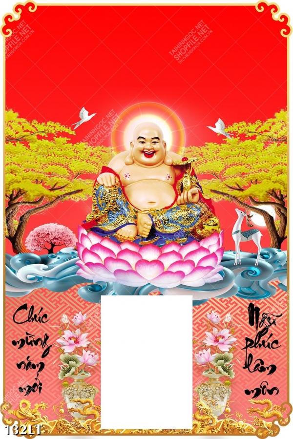Tranh lịch phật di lặc ngồi trên đài sen, file gốc tranh lịch phật di lặc tỏa nắng