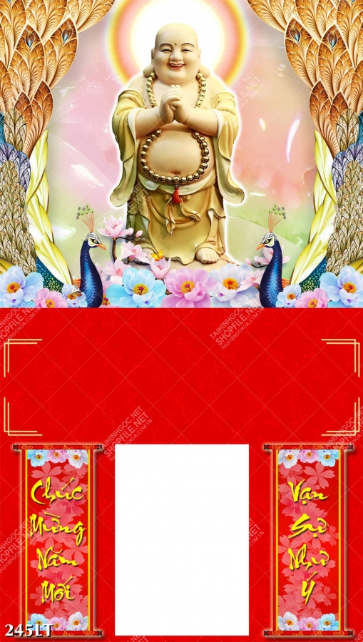 Tranh lịch phật di lặc phát tài phát lộc treo tường, file gốc chất lượng cao tranh lịch phật di lặc bên cặp công trang trí phòng khách