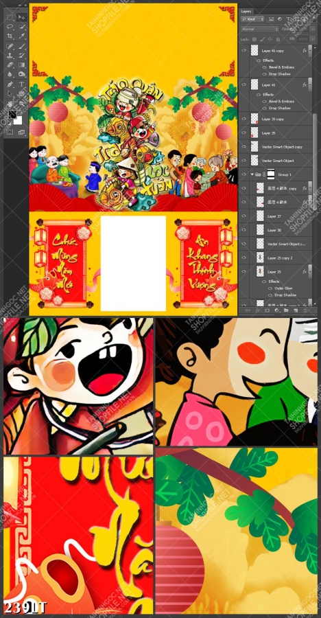 Tranh lịch táo quân trao lộc xuân đến mọi gia đình, file gốc chất lượng cao tranh lịch mọi gia đình cùng vui mừng đón tết