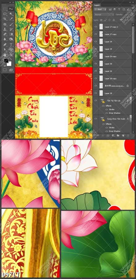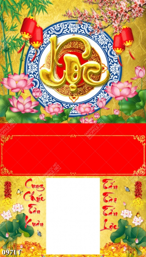 Tranh lịch tết chữ lộc vàng ý nghĩa, file gốc tranh lịch chữ lộc bên hoa sen đẹp