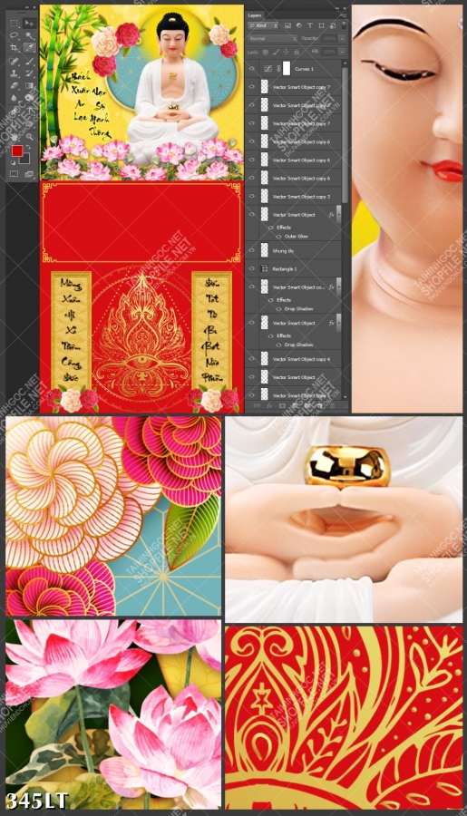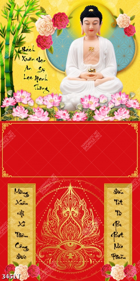 Tranh lịch tết phật ngồi thiền trên những bông sen đẹp rạng rỡ, file gốc chất lượng cao tranh lịch tết chủ đề phật giáo ấn tượng đẹp mắt