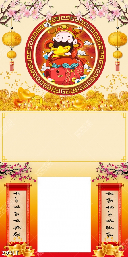Tranh lịch thần tài mang tài lộc dư giả gia đình hòa thuận, file gốc chất lượng cao tranh lịch tết thần tài cưỡi cá chép thân quen