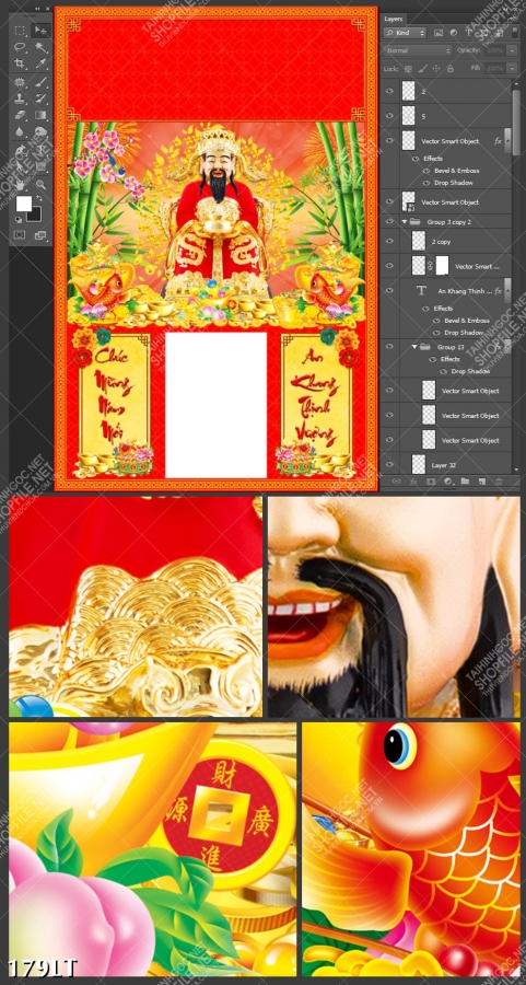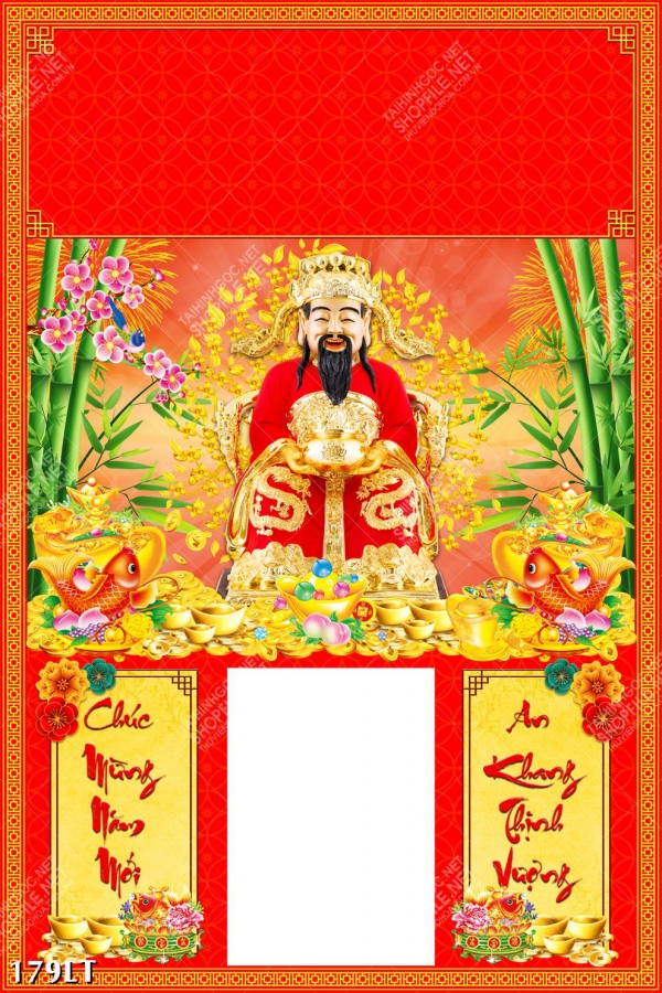 Tranh lịch thần tài ôm vàng đem lại thành công tài lộc cho gia chủ, file gốc chất lượng cao tranh lịch thần tài phát lộc phát tài