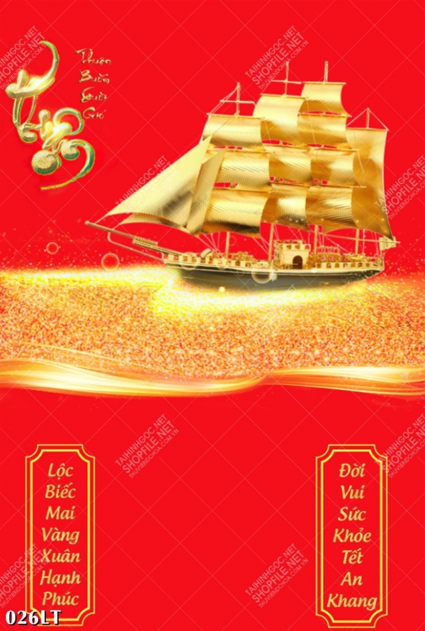 Tranh lịch treo tường thuyền buồm xuôi gió trên biển khơi chở tài lộc, tải file gốc tranh thuận buồm xuôi gió